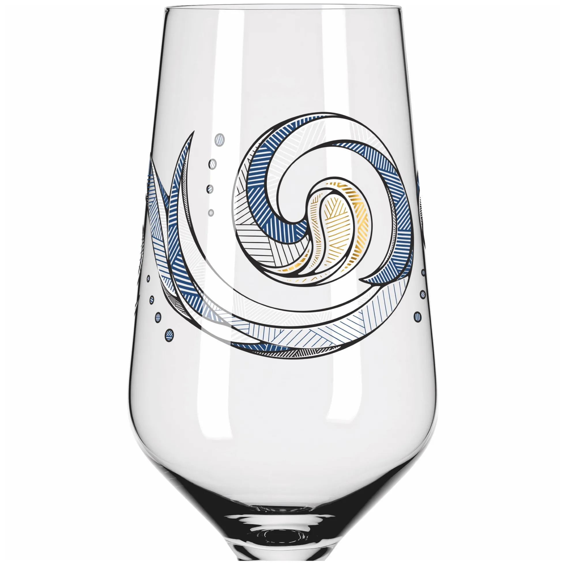 Wasser. Klare Formen, ausschraffierte Flächen und funkelnde Farben lassen in Blau und Gold einen Grundpfeiler der Braukunst entstehen, um im Kleinen vom Wert des Wesentlichen zu erzählen.