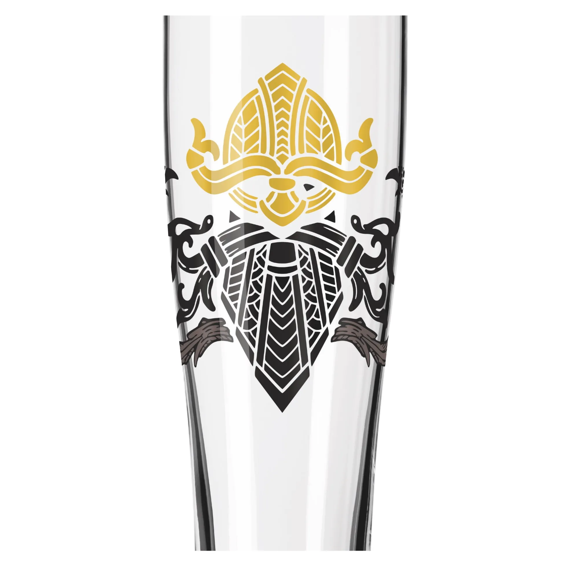 Expeditionen und nordische Runen: Zwei Quintessenzen des Wikingerlebens zeigen sich stilsicher in erdig‐goldenen Tönen auf dem Dekor. Farblich ergänzen sie sich ideal mit dem kühlen Nass im Glas.