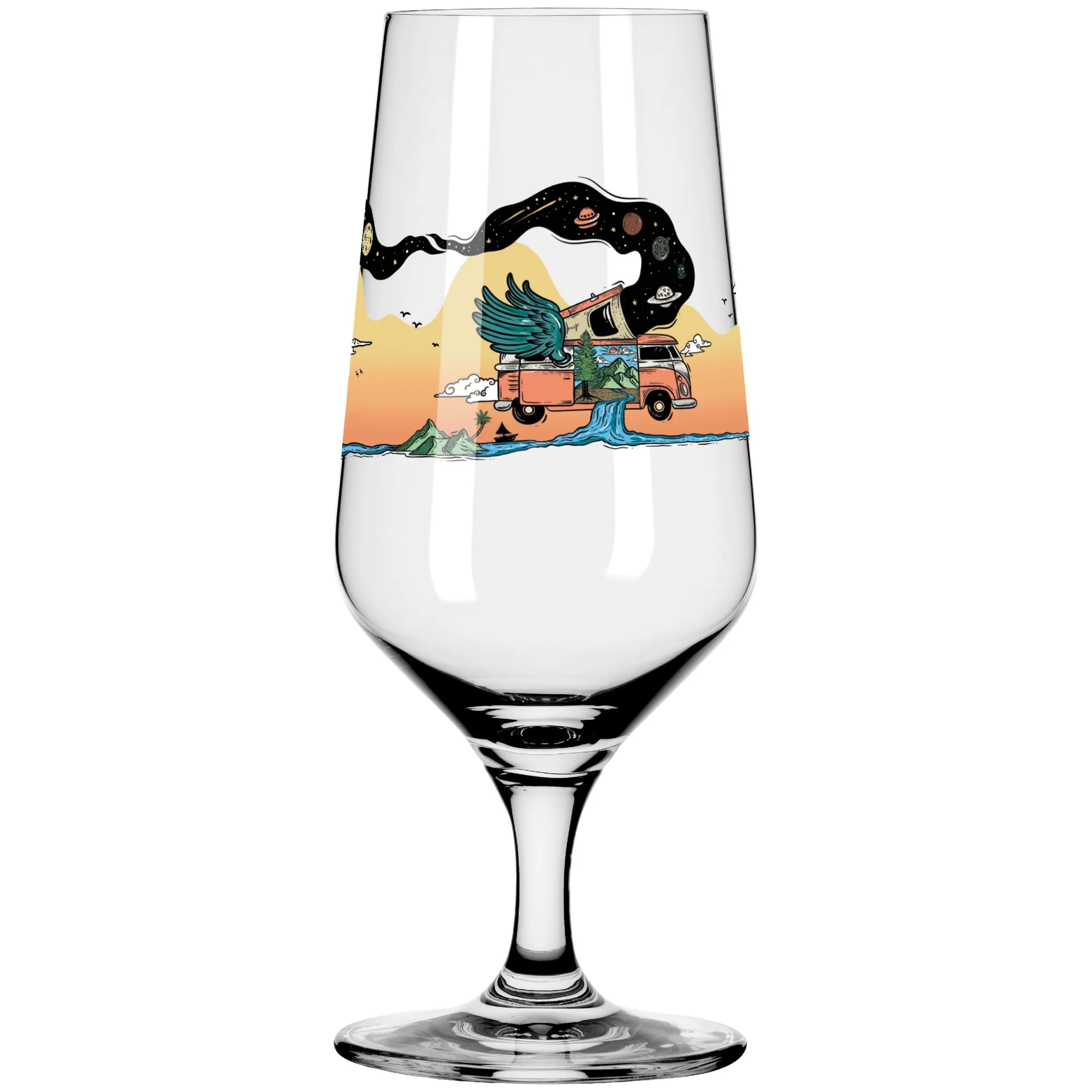 Erfrischender Genuss trifft auf das Freiheitsgefühl des Vanlife: Dieses Pilsglas‐Set bringt die Natur direkt auf deinen Tisch. Mit seiner schlanken Form sorgt es für eine perfekte Schaumkrone und lässt die Aromen deines Lieblings‐Pilses optimal zur Geltung kommen ‐ ideal für alle, die das Abenteuer lieben und sich nach einem Moment der Ruhe sehnen.