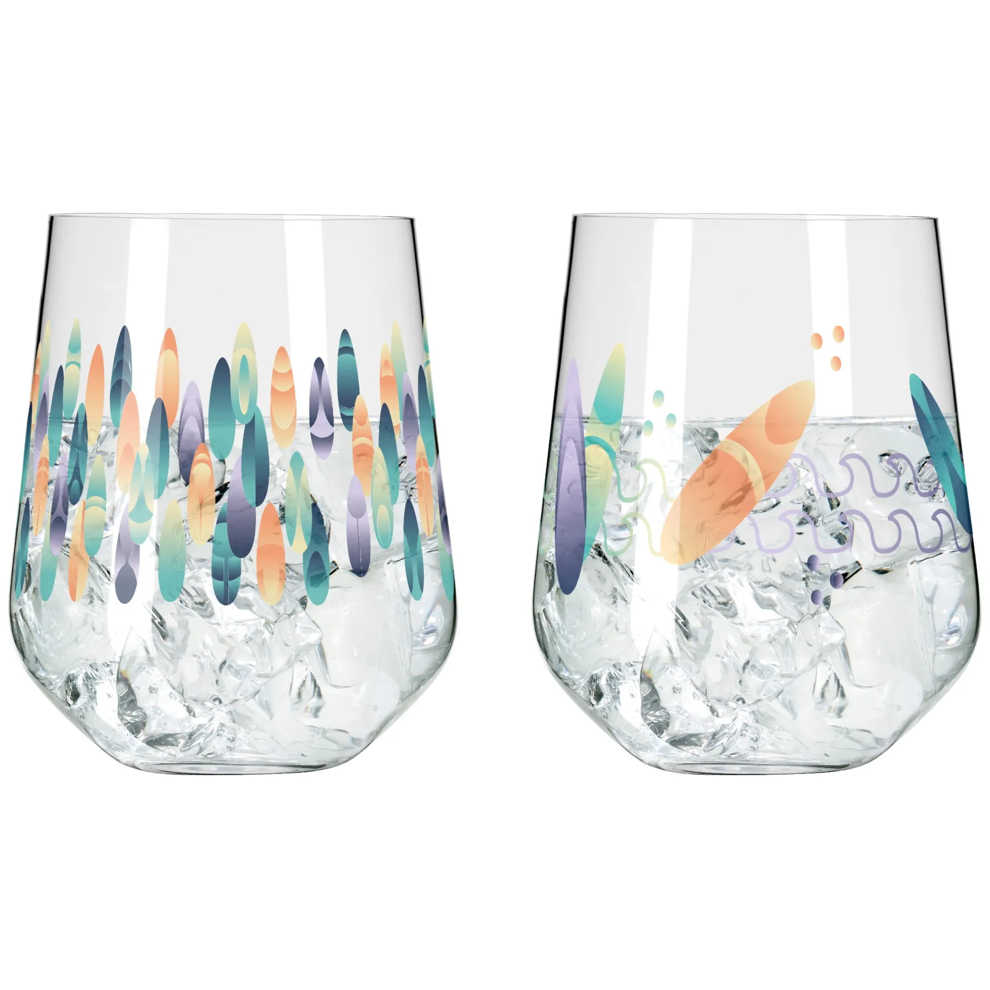 Gin trifft auf Surfstyle: Dieses Gin‐Glas-Set ist perfekt für alle, die den Sommer lieben und den Strand auf ihrem Tisch spüren möchten. Die großzügige Form sorgt für perfekte Gin‐Aromen, während die Surfing-Motive für einen Hauch von Abenteuer sorgen.