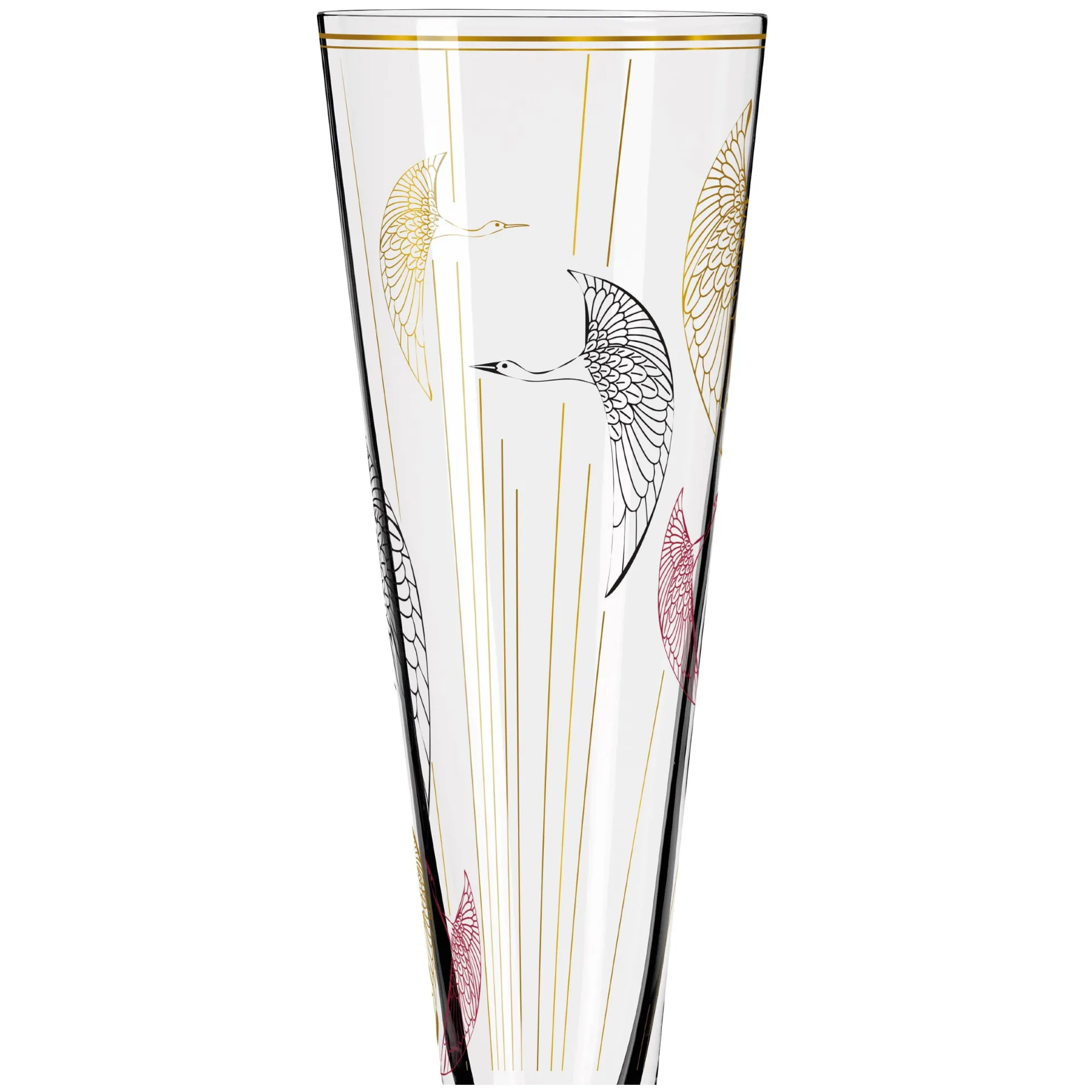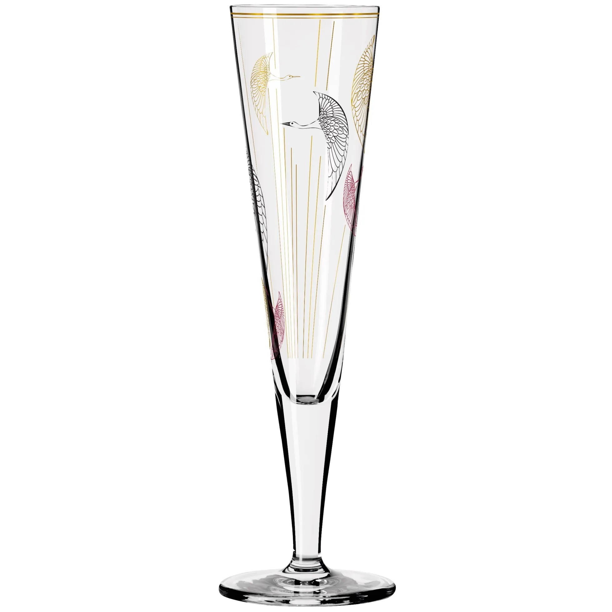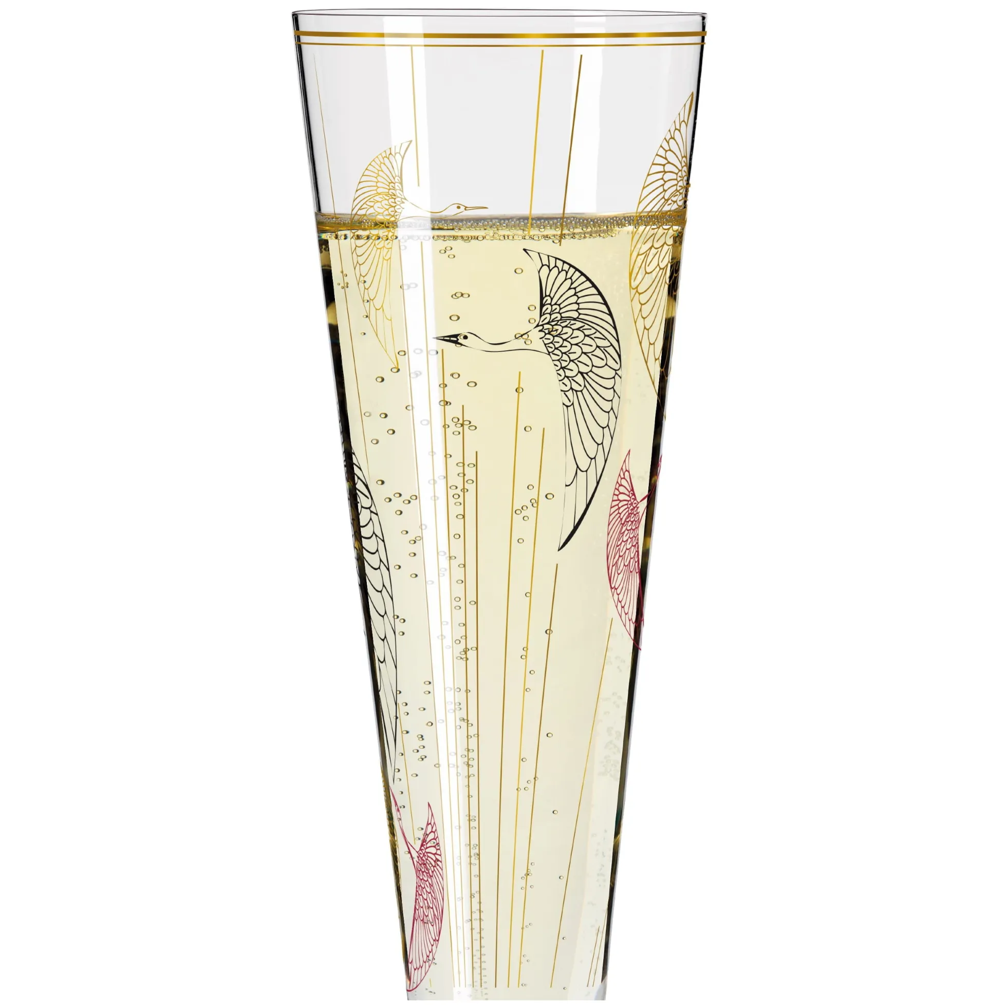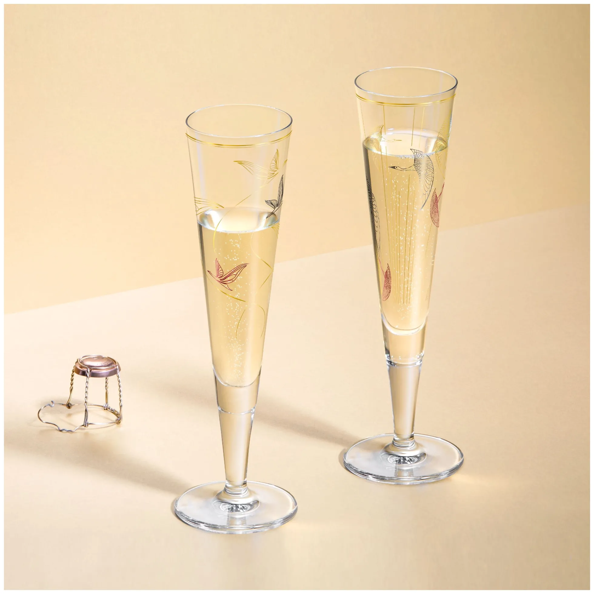 Auf den Schwingen des Lebens: Das Champusglas zeichnet in zeitloser Ästhetik den Flug der Wildgänse nach, die mit einer Hingabe zum Detail ihre Flügel über festliche Stunden ausbreiten.