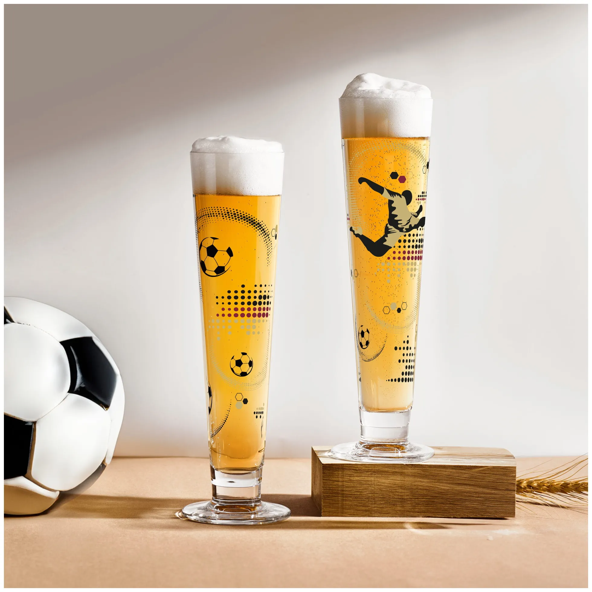 Die Liebe zum Fußball ist unübertroffen, und wie sagt man: „Das Runde muss ins Eckige und das Goldene ins Glas.“ Mit diesem Bierglas‐Set wird das Ballgefühl noch intensiver ‐ Prost auf Tore und Leidenschaft!