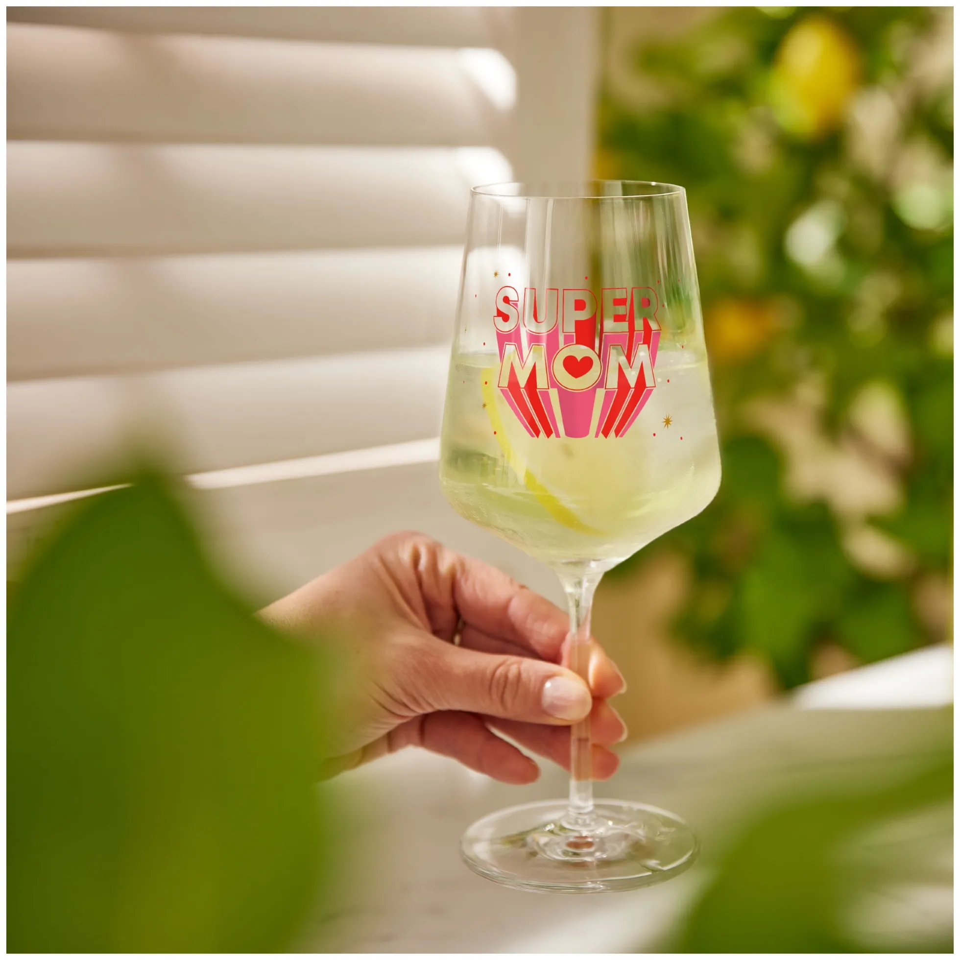 Super Mom – Das perfekte Glas für die Heldin des Alltags! Lasst uns gemeinsam mit diesem stilvollen Glas auf unsere Moms annstoßen. Egal ob als Geschenk zum Muttertag oder als Erinnerung an ihre heldenhaften Taten ist dies ein ganz besonderes Glas.
