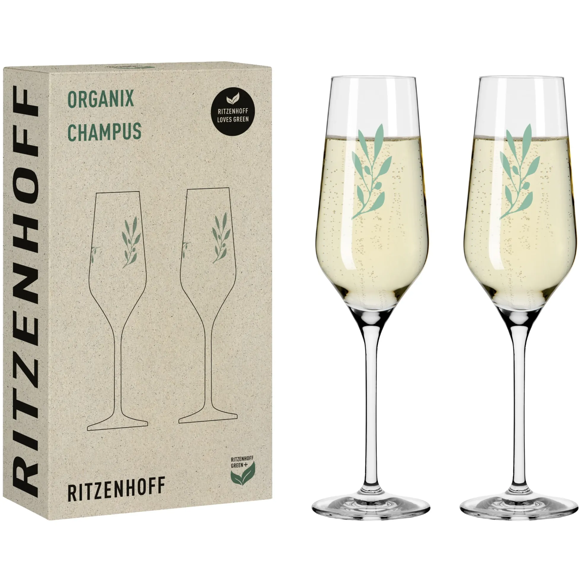 - Champagnerglas‐Set mit mediterranem Dekor aus organischen Farben und 45% recyceltem Glas