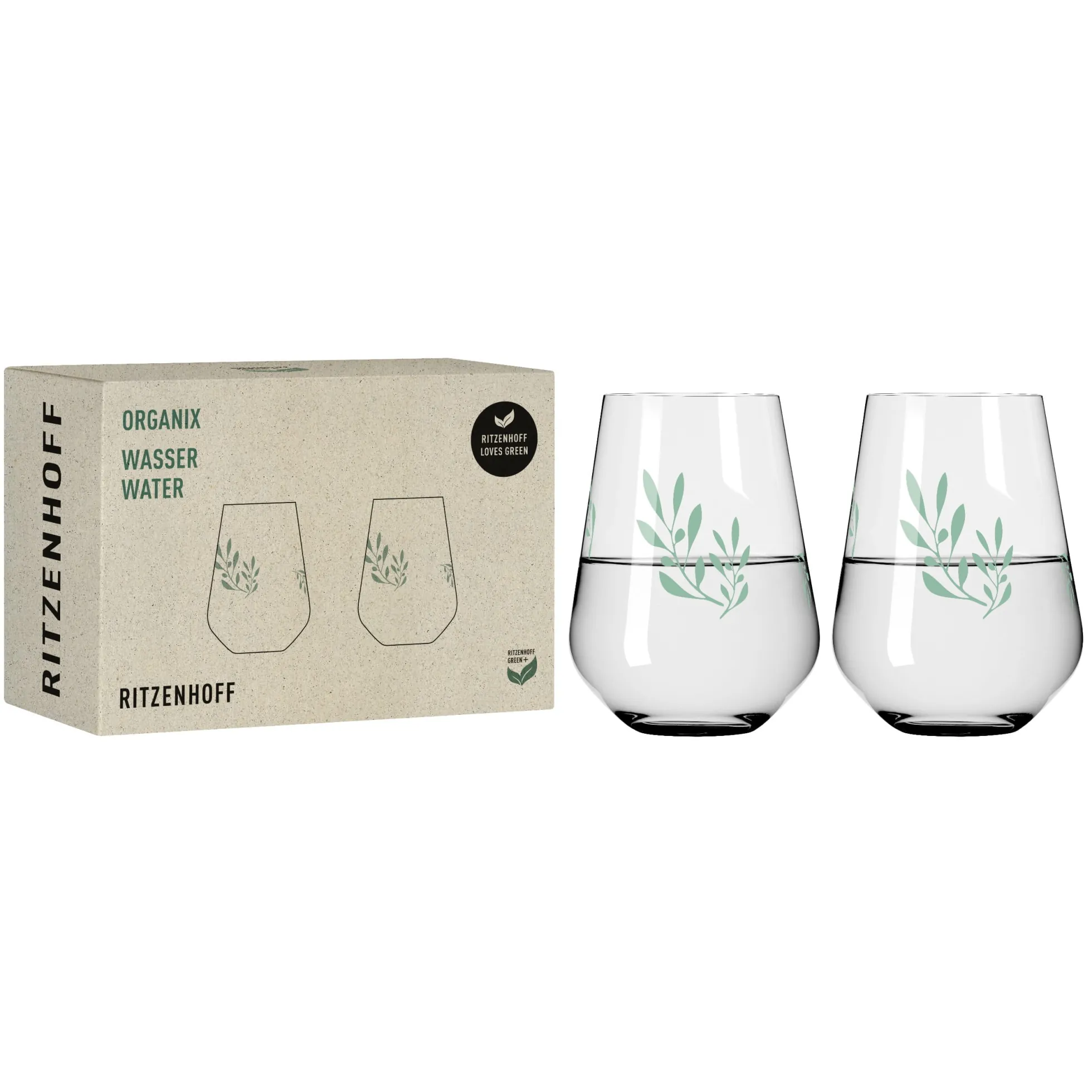 - Wasserglas‐Set mit mediterranem Dekor aus organischen Farben und 45% recyceltem Glas