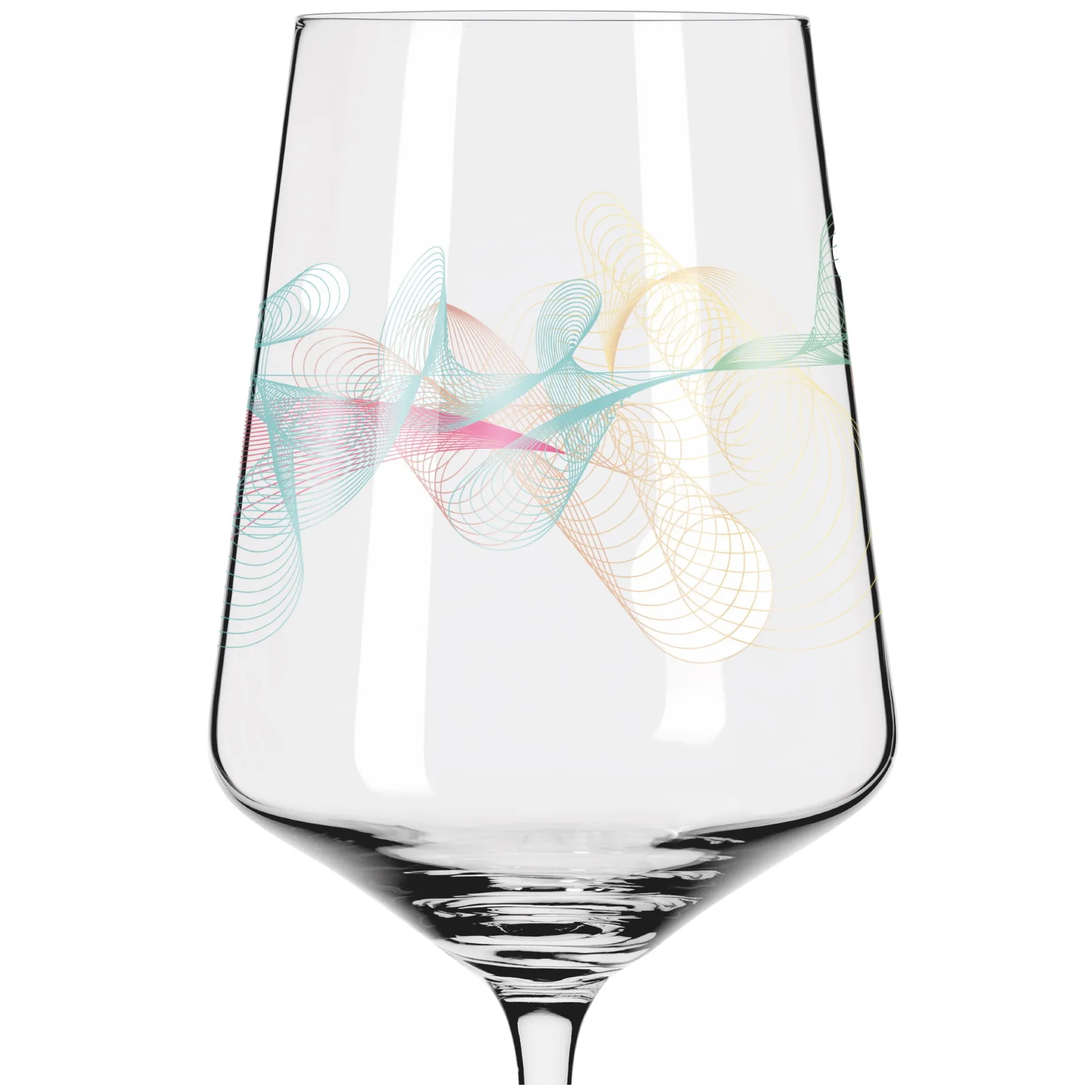 Nicht von dieser Welt: Wie die Umlaufbahnen pastelliger Planeten wirbeln verschlungene Spiralen fröhlich um das Glas und tanzen den nicht enden wollenden Reigen schwereloser Leichtigkeit.