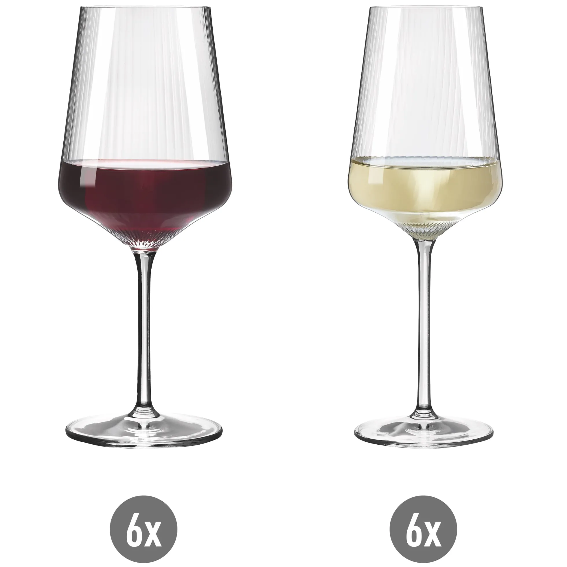 Mit dem Sonnenschliff Weinglas‐Set aus 6 Weiß‐ und 6 Rotweingläsern machst Du aus jedem Moment ein Fest! Die filigrane Reliefstruktur der Gläser erschafft ein strahlendes Wechselspiel von Licht und Schatten. Eine unbeschreibliche Atmosphäre für stilvollen Weingenuss ‐ die für Begeisterung bei Deinen Gästen sorgt!