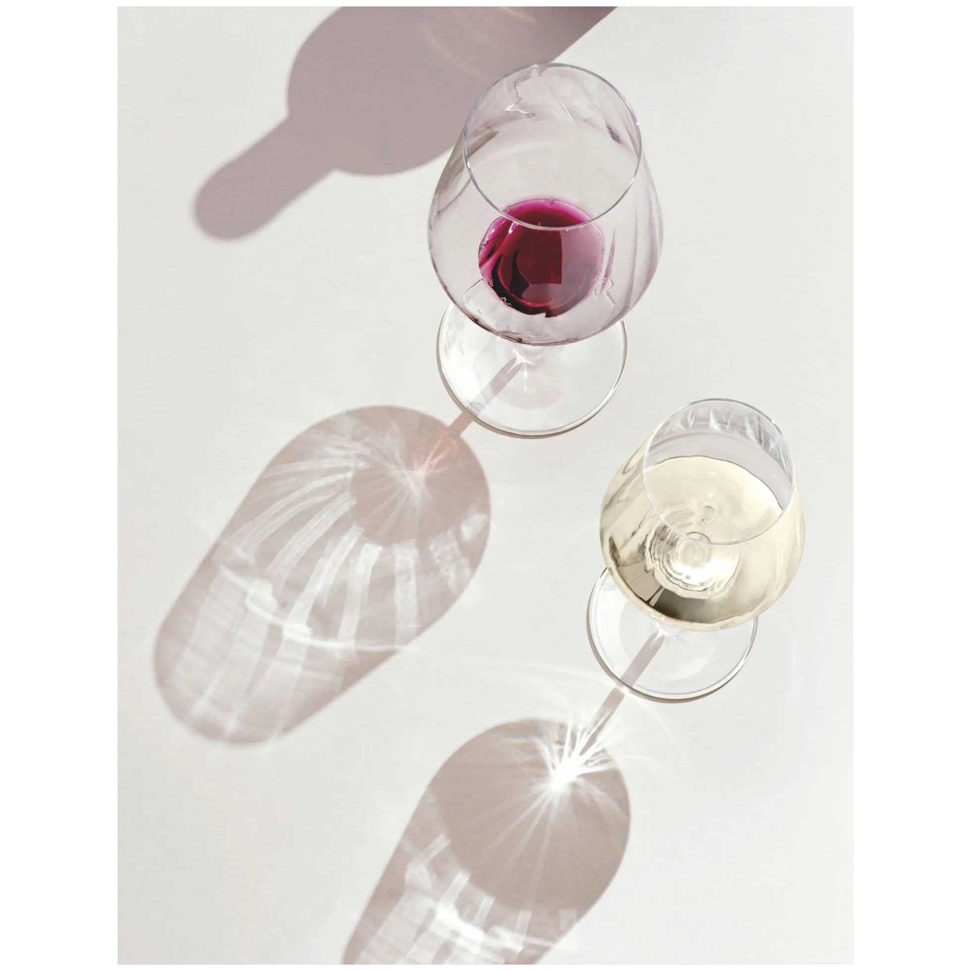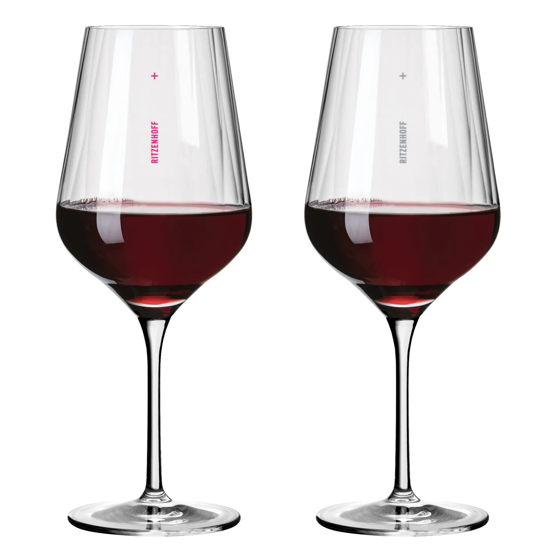 Pure Formsprache ‐ präzise im Detail: Das Rotweinglas‐Set ist mit einer innenliegenden Reliefstruktur aufwendig gearbeitet und lässt ein Wechselspiel von Licht und Schatten entstehen.