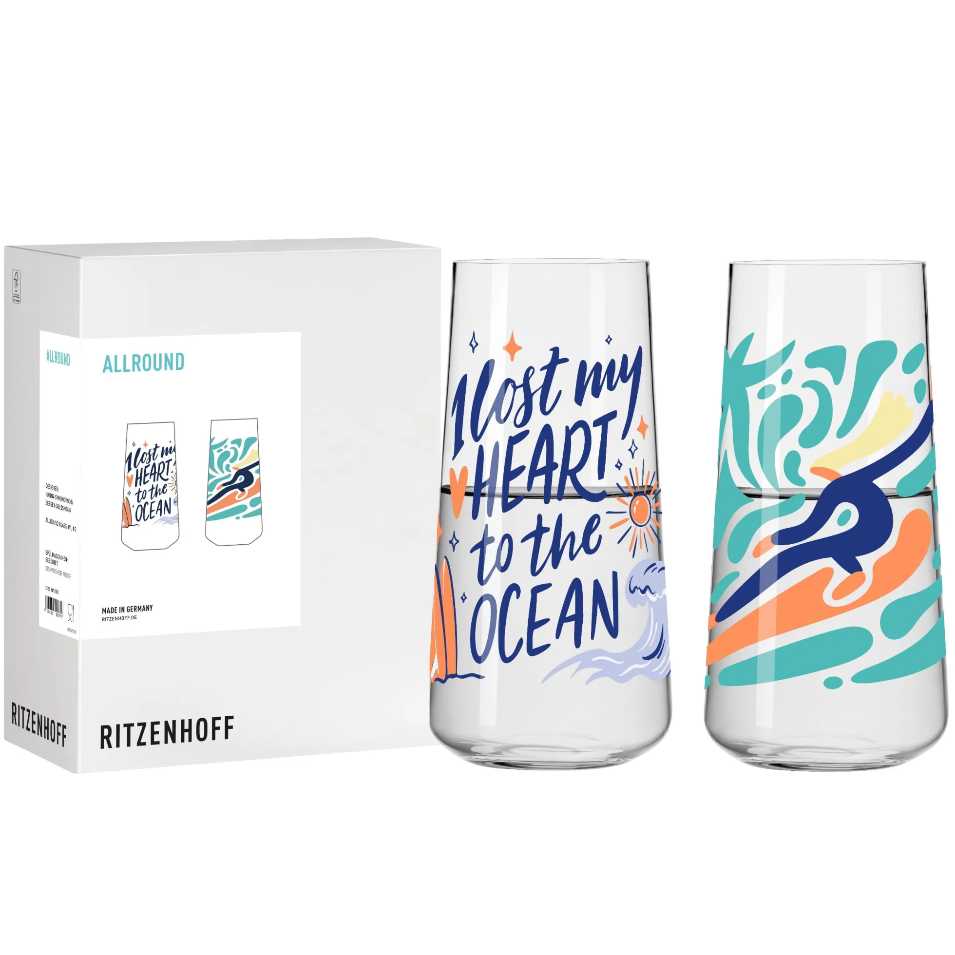 Ob Wasser, Softdrinks oder Cocktails ‐ dieses Allroundglas‐Set bringt das entspannte Surfer‐Feeling direkt auf deinen Tisch. Die frischen und dynamischen Surfing‐Motive machen diese Gläser zu einem vielseitigen Begleiter für jeden Anlass.