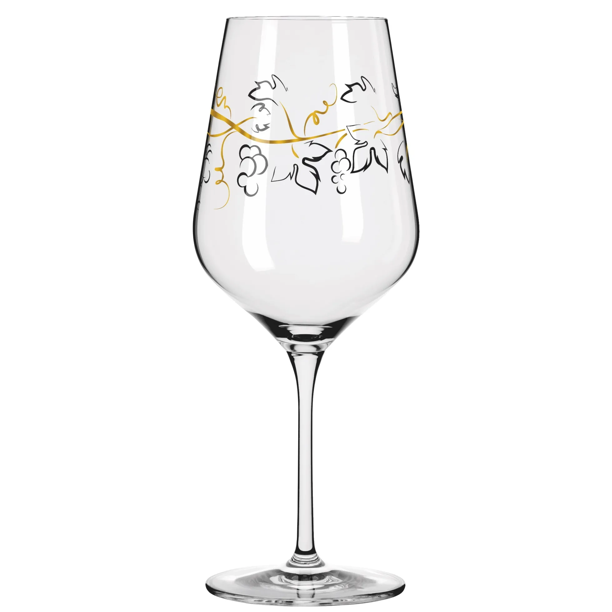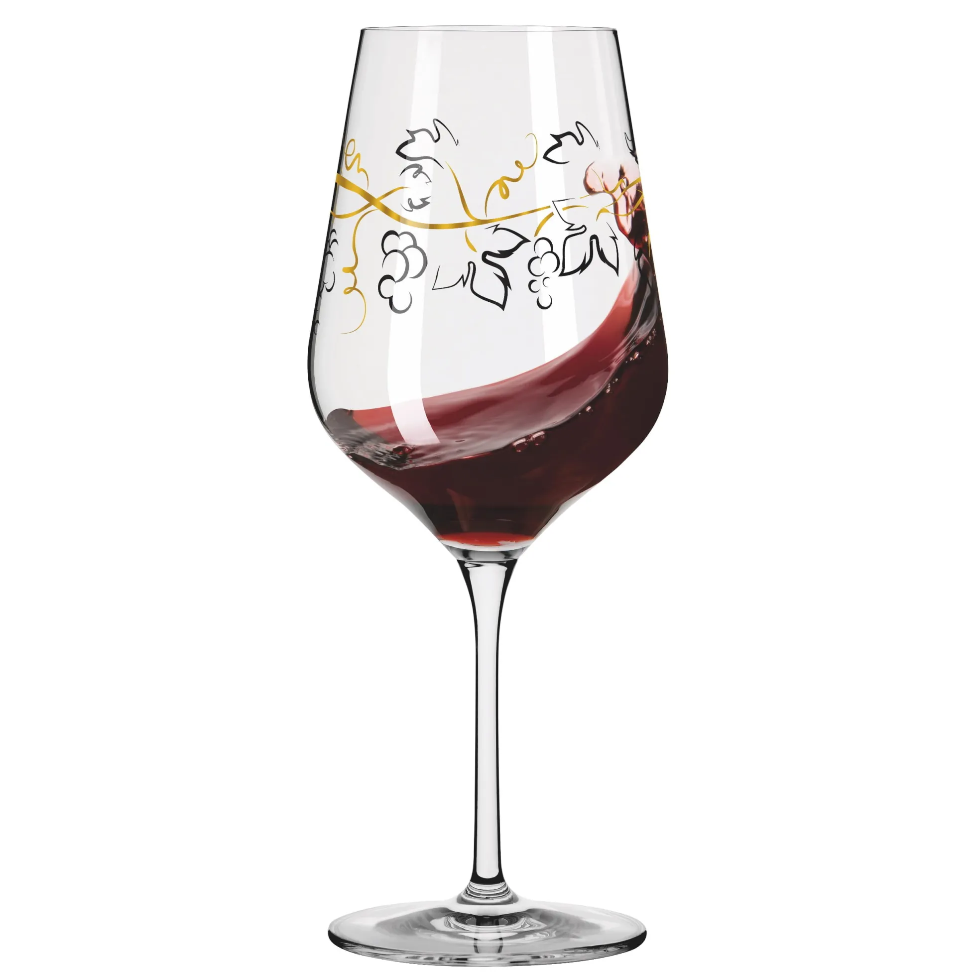 - Elegantes Rotweinglas mit kostbaren Goldanteilen im Dekor