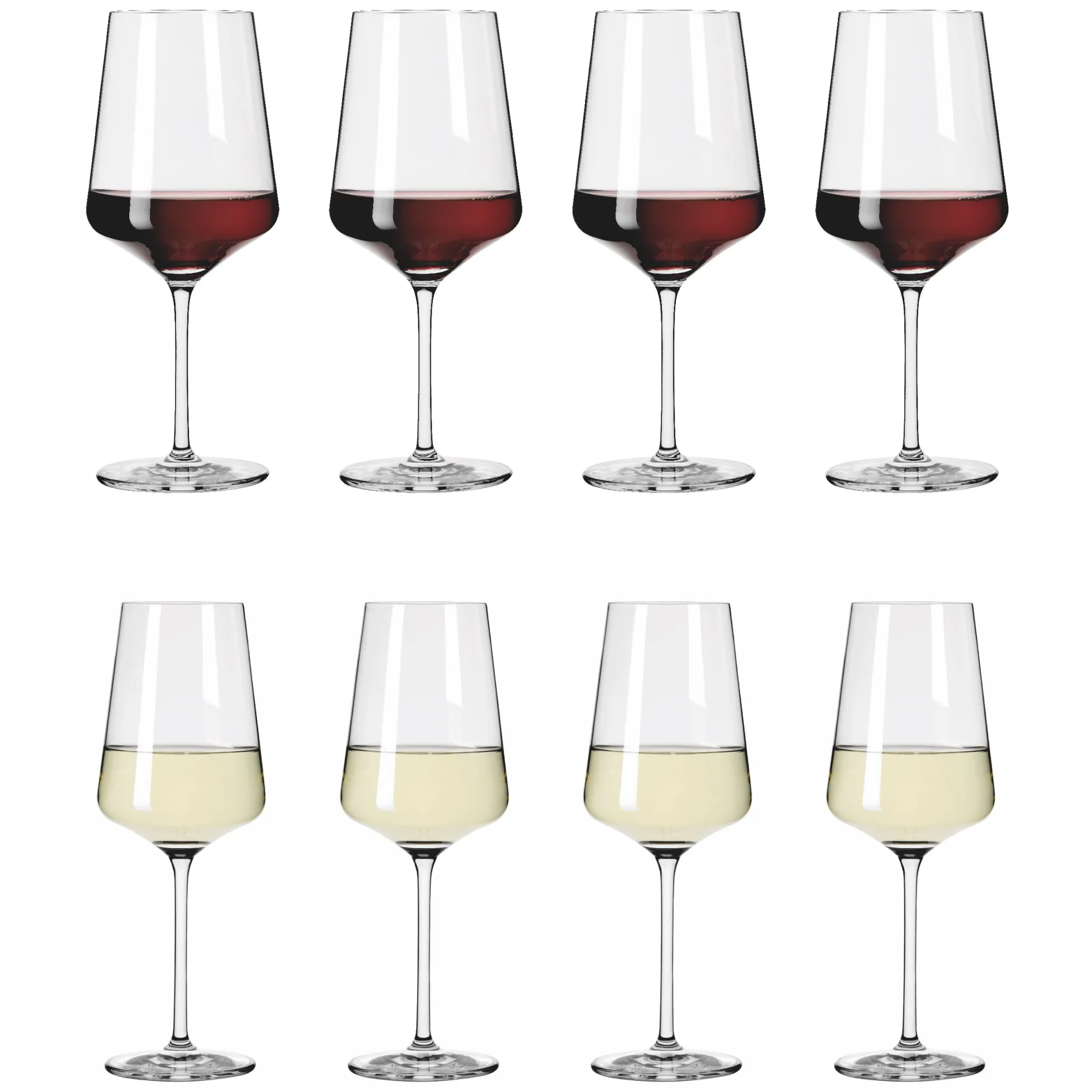 Modernes Rotwein‐ und Weißweinglas‐Set bestehend aus 4 Rotwein‐ und 4 Weißweingläsern. Für ein perfektes Tablesetting im eleganten, minimalistischen Look. Das Set wird im praktischen Geschenkkarton inkl. Transportgriff geliefert und ist somit ein perfektes Mitbringsel für die nächste Weinprobe oder den nächsten Weinabend mit Freunden. Weitere Sets derselben Serie sind ebenfalls erhältlich.