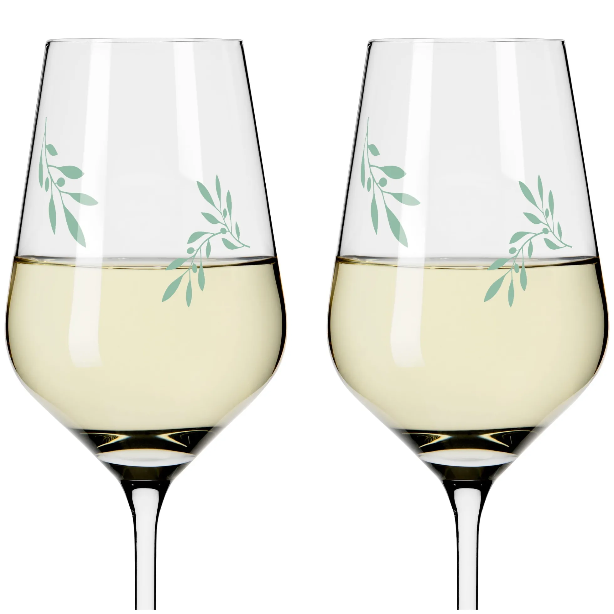 - Weißweinglas‐Set mit mediterranem Dekor aus organischen Farben und 45% recyceltem Glas